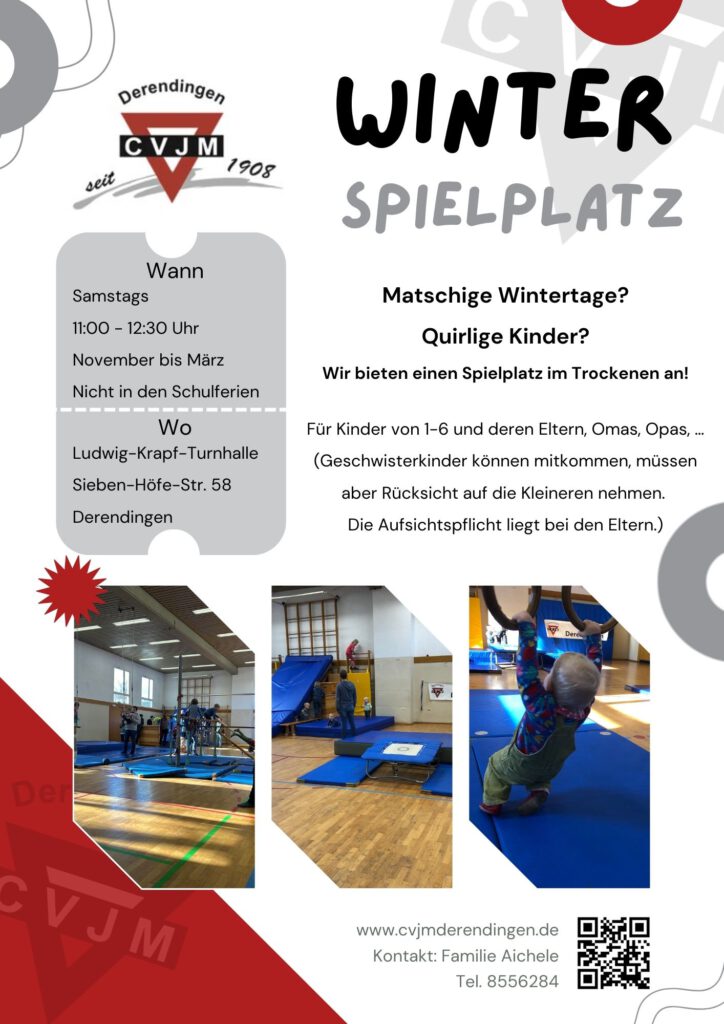 Matschige Wintertage und bewegungsfreudige Kinder? Beim Winterspielplatz des CVJM Derendingen können sich Kinder von 1 bis 6 Jahren auch in der kalten Jahreszeit richtig austoben – und das ganz wetterunabhängig in der warmen Turnhalle der Ludwig-Krapf-Schule.