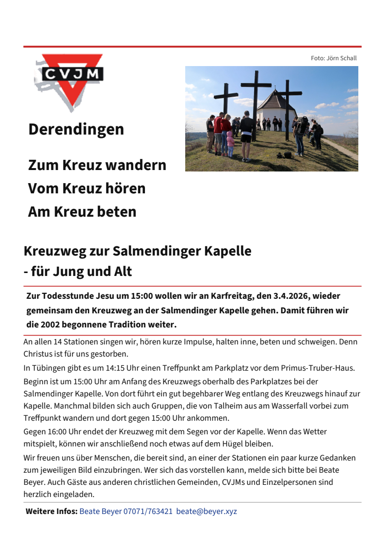 Treffpunkt zur gemeinsamen Abfahrt ist um 14:15 Uhr am Primus-Truber-Haus in Tübingen oder direkt vor Ort am Beginn des Kreuzwegs.